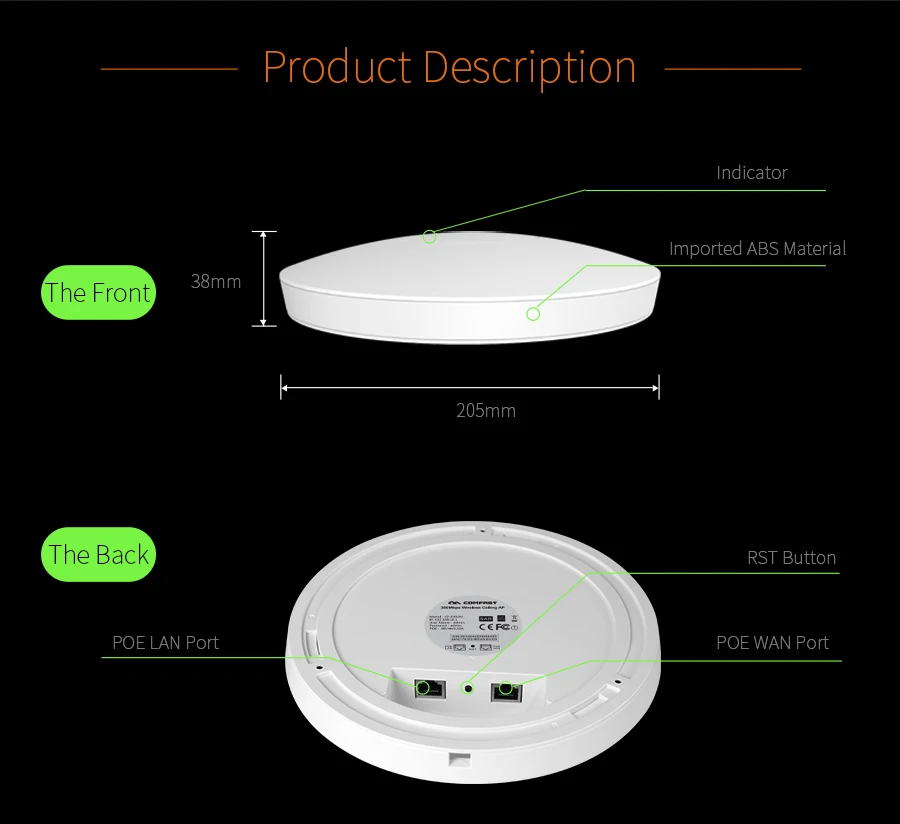 Addition Information of COMFAST 300M Indoor Ceiling AP Through Wall Powerful 48V POE Adapter Wi fi Router Access Point Signal Amplier AP CF-E350N