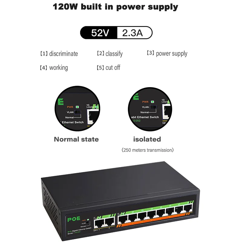 Addition Information of TEROW 10-Port Standard Full Gigabit POE Switch With Internal Power/Lightning Protection /VLAN Isolation