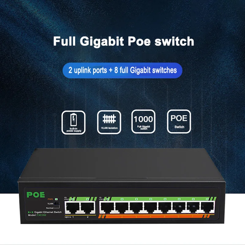.Pictures for TEROW 10-Port Standard Full Gigabit POE Switch With Internal Power/Lightning Protection /VLAN Isolation