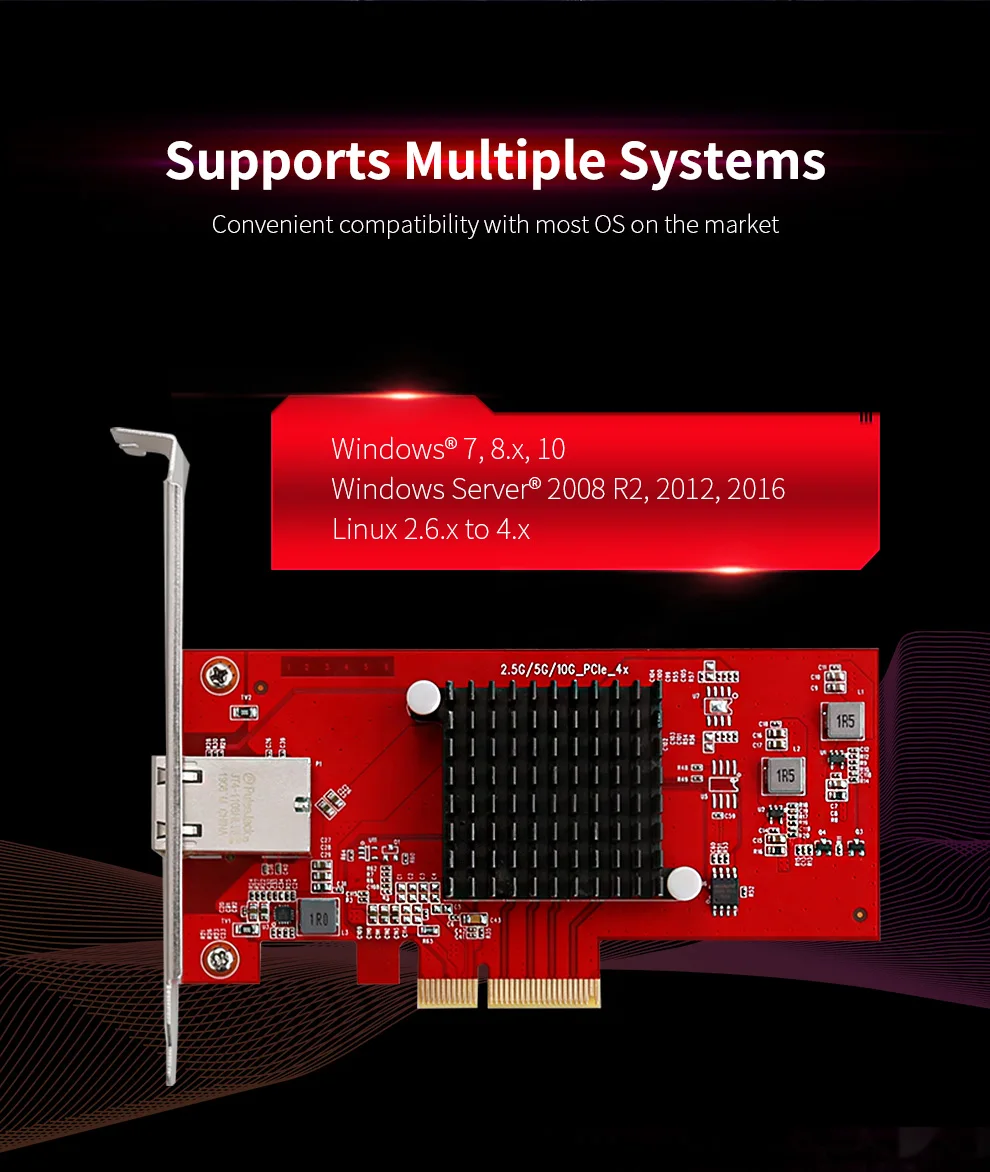 .Gallery of 10G Ethernet PCI Express 3.0 Wireless Adapter 2.5G/5G/10G PCIE-X4 Network card 10Gbps Fast Transmission Dongle For Windows Linux