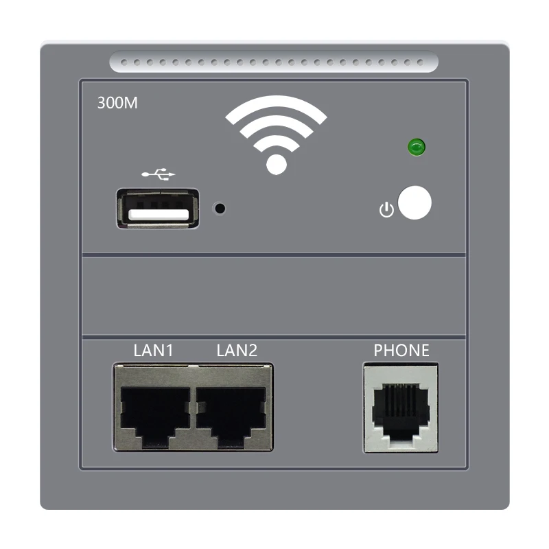Addition Information of 300Mbps Dual LAN ports with RJ11 phone USB 802.3af standard POE 86-type European standard in-wall access point router AC100-240V
