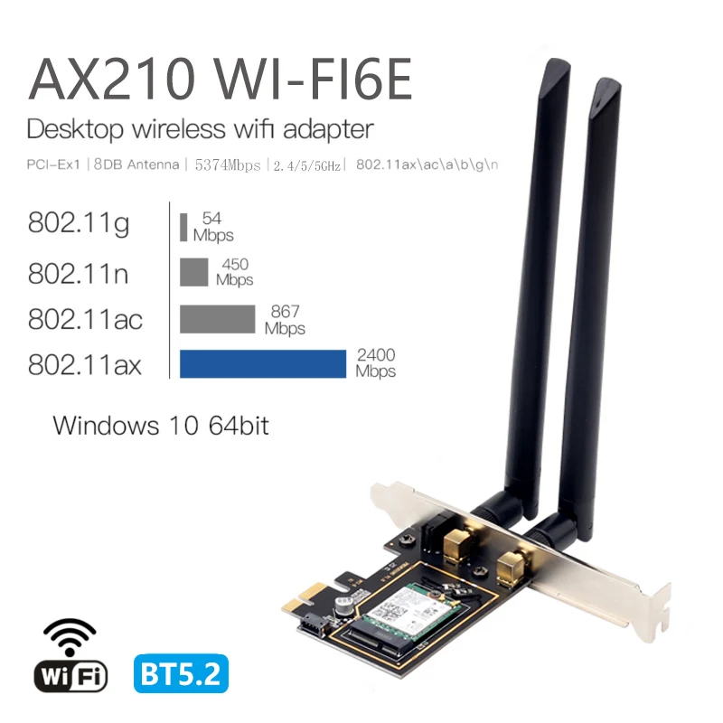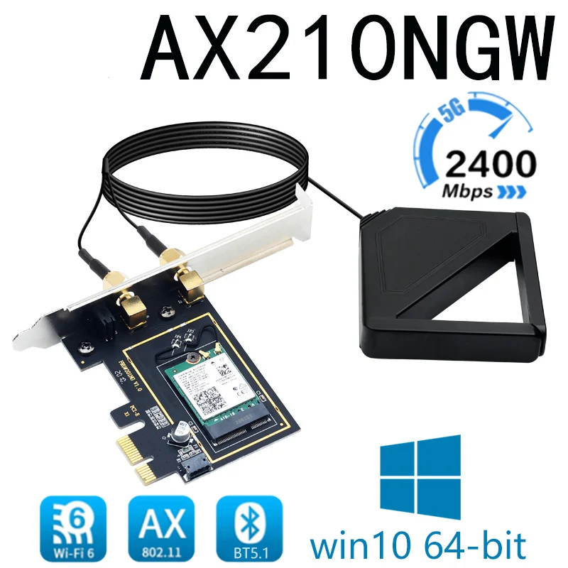 .Gallery for Triple Band Gigabit AX210 AX200 8265AC desktop wireless network card WiFi receiver AX210 WIFI 6E Triple Band 5374M Bluetooth 5.2