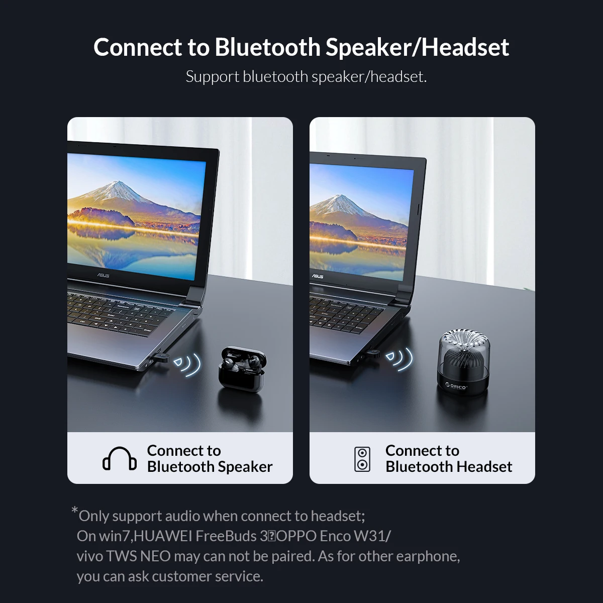 .Images of ORICO USB Bluetooth Adapter Dongle 5.0 Portable Bluetooth Receiver Transmitter Support Windows 7/8/10 for PC Laptop Keyboard